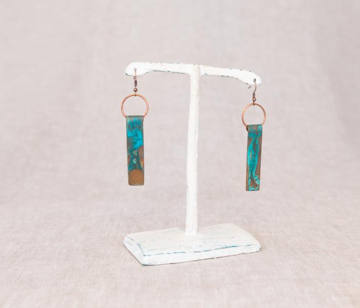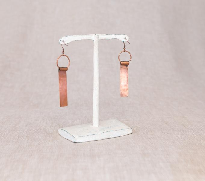 These drop rectangular earrings are made from up cycling wasted hot water heaters ( geysers) and turning them into inspirational jewellery pieces. Accessories that are inspired by women and made by woman. Mastering the saying "the hands that make"