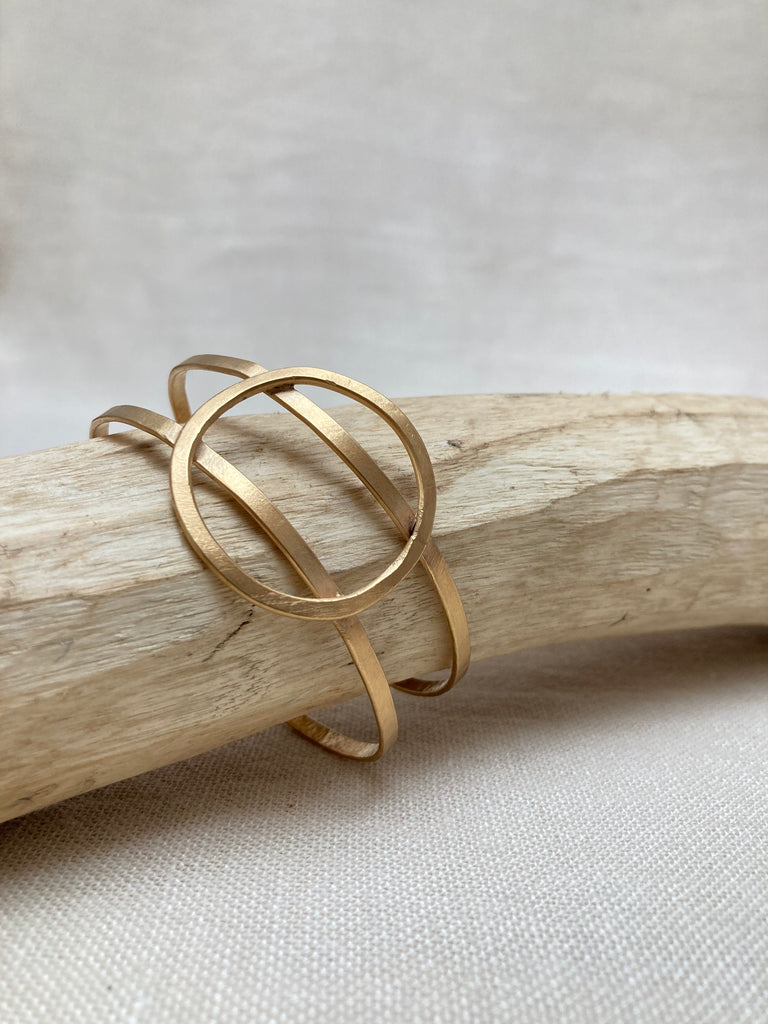 Elegant and sophisticated gold plated cuff. Inspired by the natural surroundings of the Zambian landscapes. Each cuff is carefully made by young self-taught Zambian woman. A design made from start to finish with a creative and artistic soul in mind.