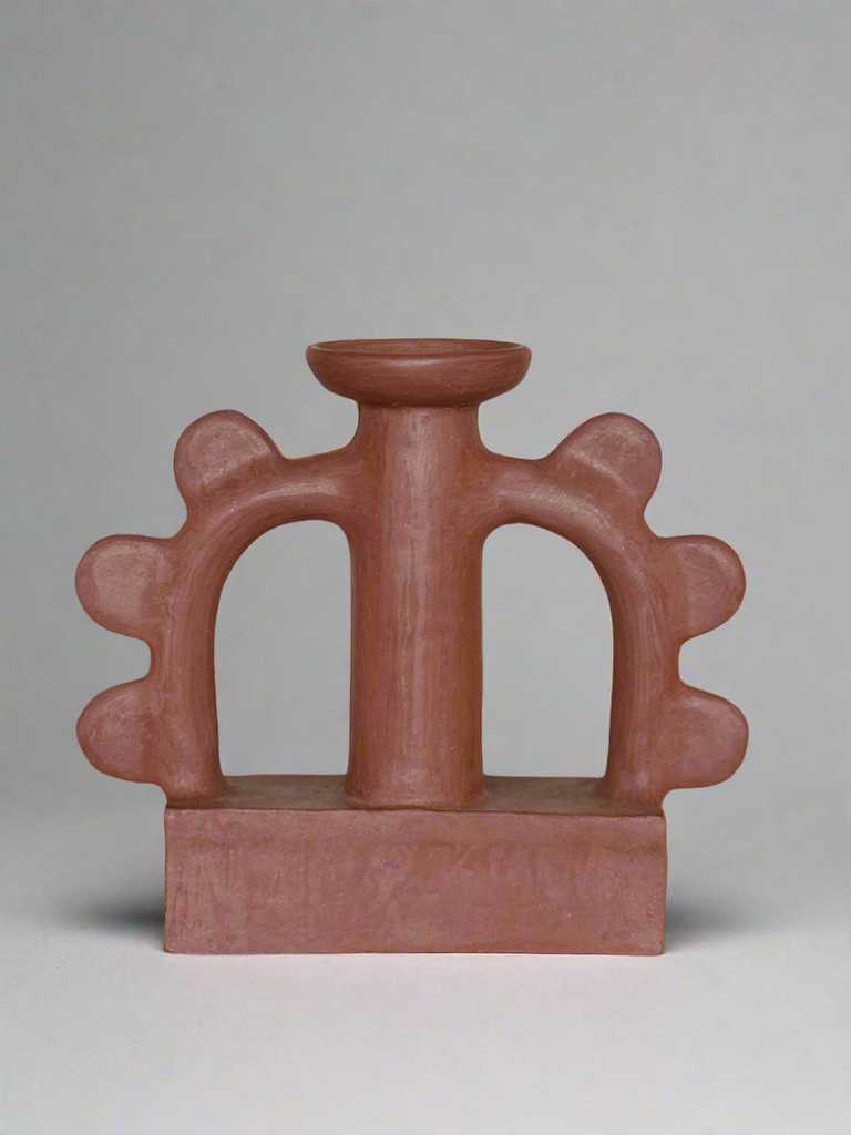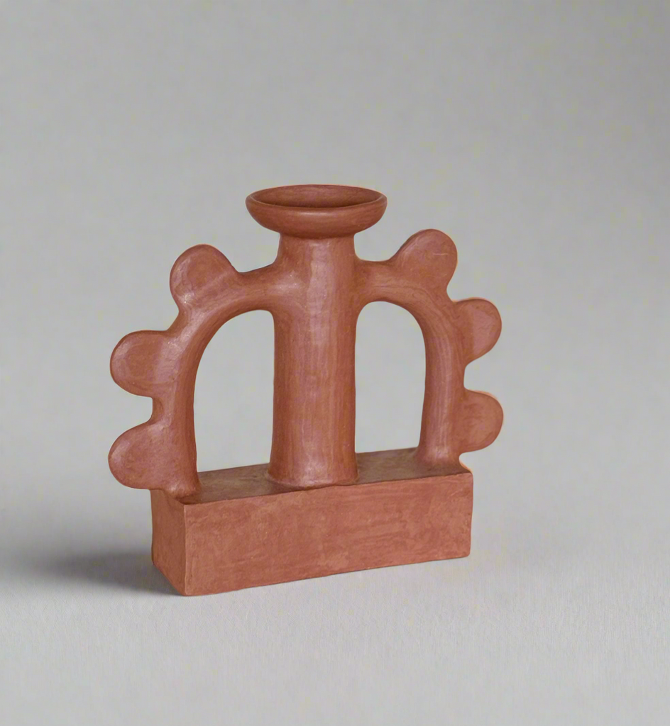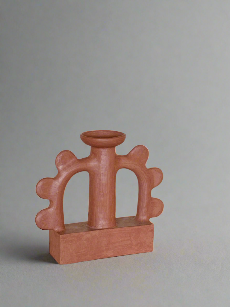 Earthy, sculptural, and rich in texture, this handcrafted clay candle holder is a striking blend of tradition and contemporary design. Its bold, organic form makes it a statement piece, whether styled on its own or illuminated with a candle. Designed to hold both standard and tea light candles, its raw terracotta finish adds warmth and depth to any space.