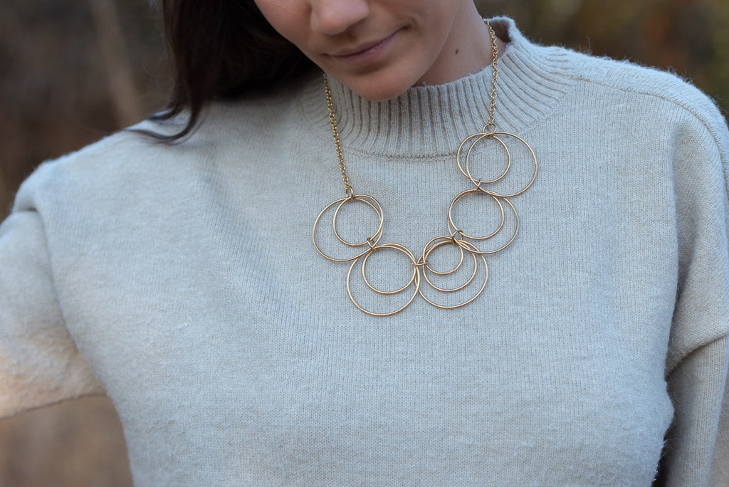 Handcrafted in the heart of Zambia, this plated looped necklace is made with the environment in mind making use of cycled hot water heaters. It purchase plays a large role in impacting the community and her makers from Ngombe compound. 75% of this purchase is returned to the makers.