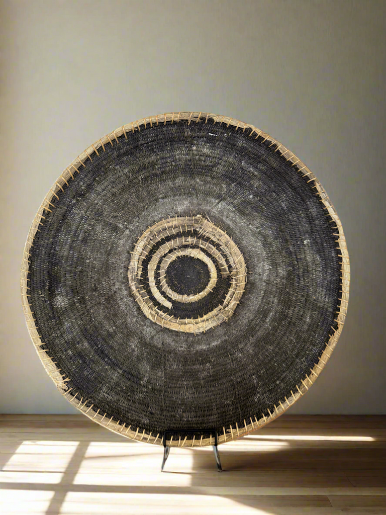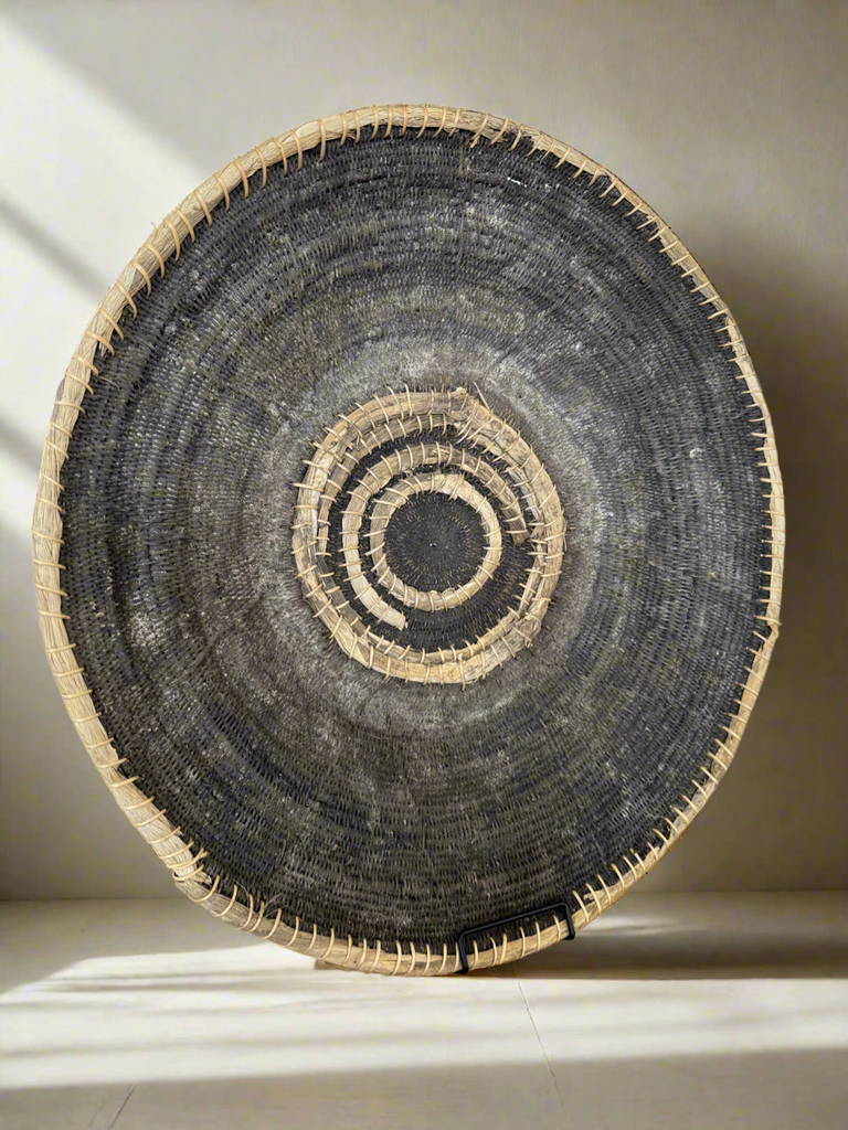 Each basket carries a rich patina and unique markings, reflecting its history and making it a highly sought-after collector’s piece. Whether displayed as decorative wall art or styled as a distinctive tabletop accent, the Makenge basket adds warmth, texture, and cultural heritage to any space.