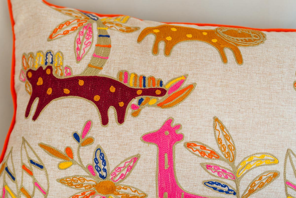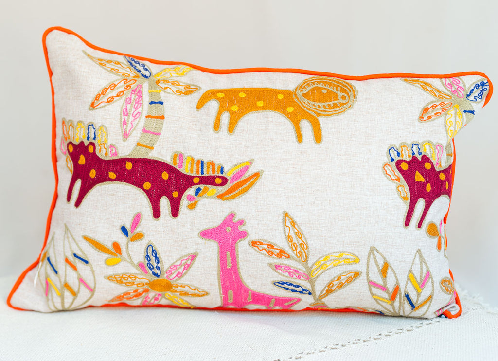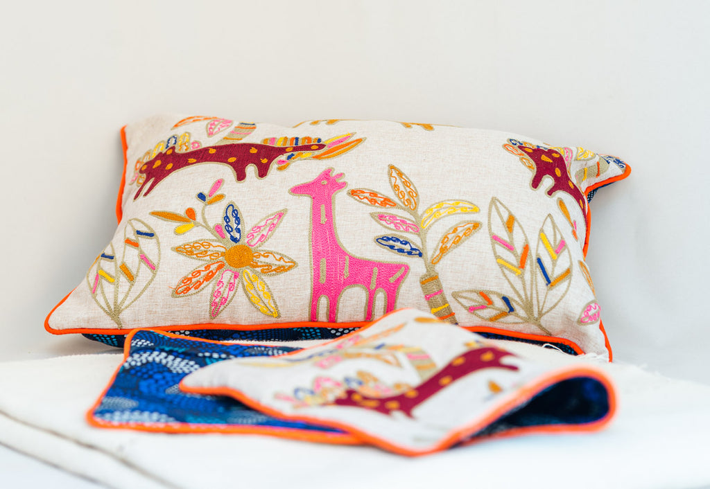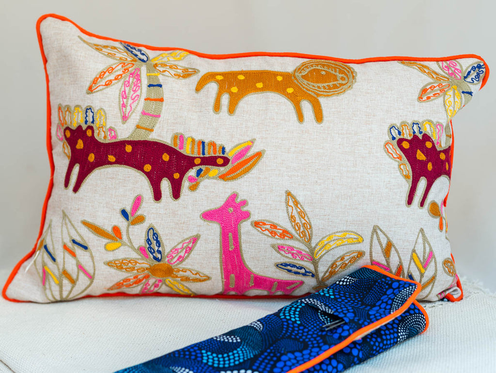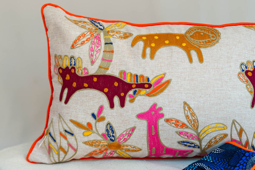 These unique, embroidered, seamless and modern decorative pillow covers can bring artistic elements to any room. They are handmade in Zambia and depicting the vibrancy of both the land and her people.