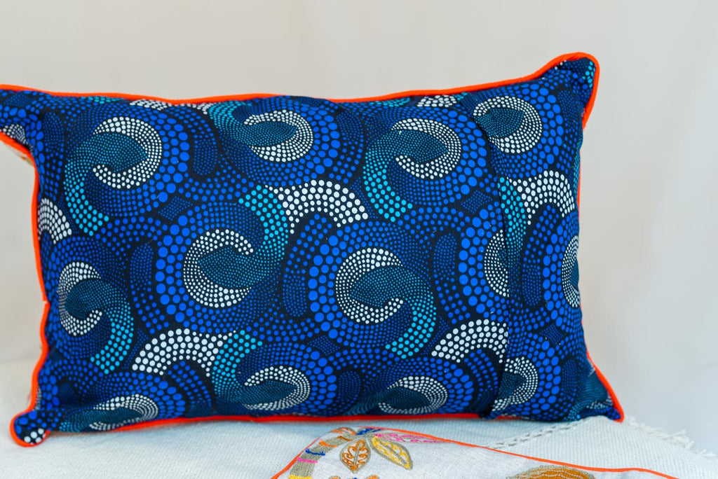 Pillow Insert not Included (Only Cover is on Sale), Zipper closure. Pillow Cover Size:  58cm x 38cm Approx. Pillow Cover is Reversible, Back: a Vibrant eclectic African printed cotton.