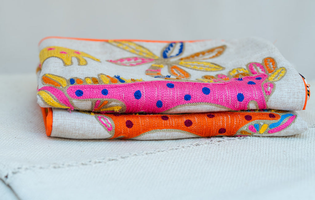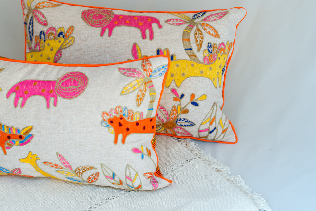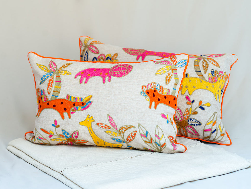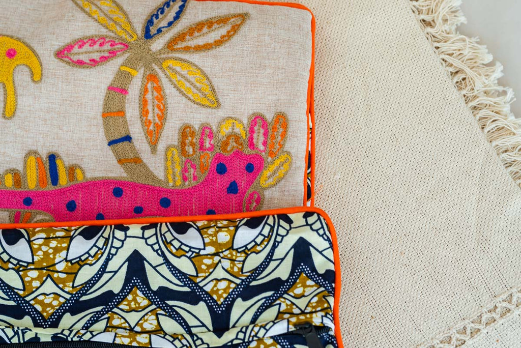 These unique, embroidered, seamless and modern decorative pillow covers can bring artistic elements to any room. They are handmade in Zambia and depicting the vibrancy of both the land and her people.